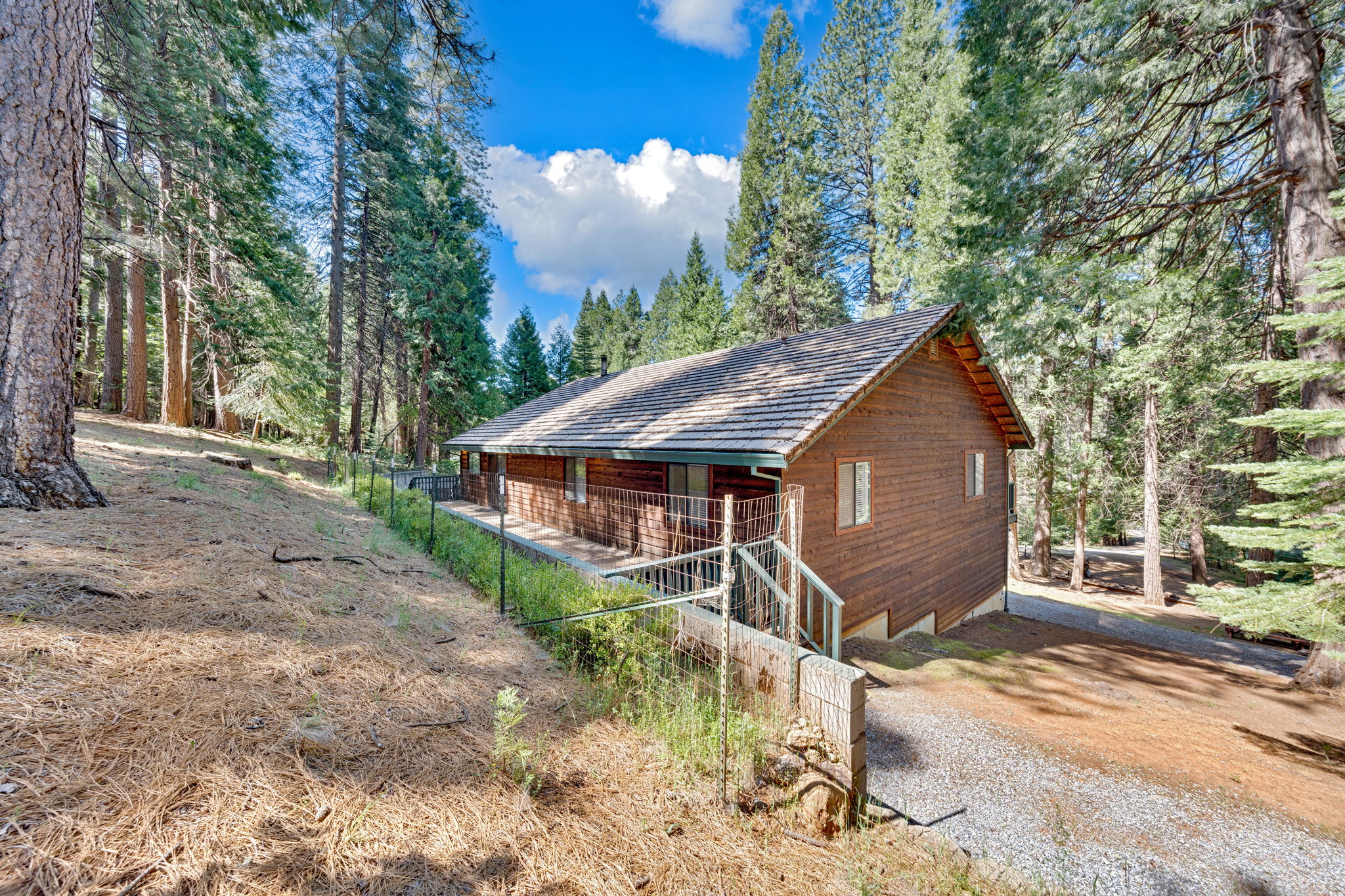 Escape to this serene, mountain retreat nestled on 1.75 gently rolling acres, a haven for nature lovers & hobbyists alike. Inside, the home features 3 beds, 2 full baths, a large kitchen, equipped with easy-to-clean countertops, built-in gas range, double ovens & pantry closet. The expansive living room boasts high ceilings & a charming wood-burning stove encased in a beautiful stone surround, perfect for warming up on chilly nights. Calling all TINKERERS: this MASSIVE 4-car garage complete with a spacious workshop, bonus room & powder bath, is the perfect spot for all your toys & any future projects. The oversized carport provides ample space for a boat or RV + the wrap-around driveway offers easy access directly to the main level of the home without having to take the stairs! Located just 1.5 miles from the stunning Sly Park Lake, a mere hour's drive from Tahoe, this well-maintained cabin is ideal for those looking to enjoy all the natural beauty & recreational opportunities the area offers. Adorned with soaring trees & a seasonal creek, it's an idyllic retreat. Enjoy the tranquil surroundings year-round from both the front & back decks. Take advantage of the opportunity to own this private oasis - this property truly is a rare find!