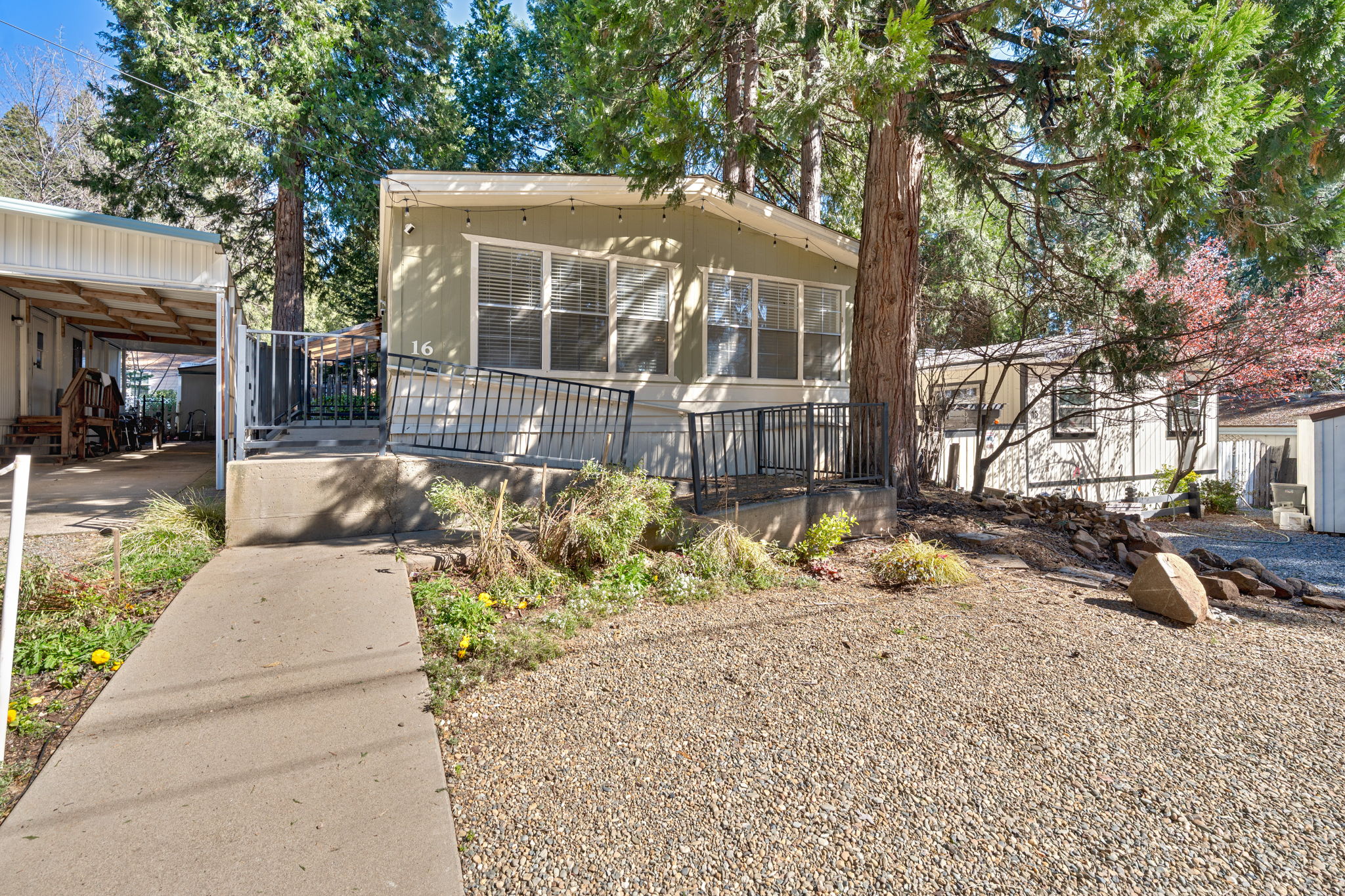 Opportunity awaits in the heart of Camino! Located in a desirable 55+ Senior Park, this double-wide fixer-upper offers 2 bedrooms, 2 full bathrooms, plus a versatile flex space that could easily serve as a 3rd bedroom, home office or hobby room. With a little vision and elbow grease, this property has the potential to truly shine. Enjoy year-round comfort with Central Heat and A/C, along with the added peace of mind and convenience that the hard-wired Generac system provides. An accessible ramp makes for easy entry and the large storage shed offers plenty of space for tools and other personal belongings. There's also ample parking for you and your guests. The monthly space rent is $745 which includes Sewer and Park Maintenance, helping simplify your living expenses. Ideally located just minutes from the orchards, wineries and seasonal festivities of Apple Hill®; this home offers the best of mountain-town living. Enjoy close proximity to local restaurants, shopping, convenient Hwy 50 access and abundant outdoor recreation opportunities; including hiking, biking and nearby lakes/forests. If you've been searching for an affordable opportunity in a fantastic location with room to make it your own, this could be the one.